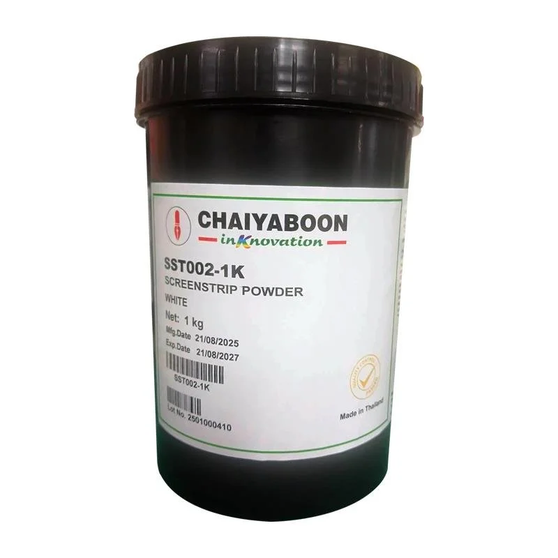 Screenstrip Powder (SST002) is a stencil remover supplied as an easily diluted powder, suitable for use on nylon, polyester, and stainless steel meshes for efficient screen cleaning and reclaiming